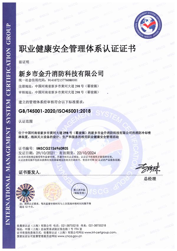 職業(yè)健康安全管理體系認(rèn)證證書(shū) -