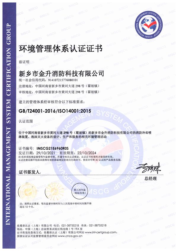 環(huán)境管理體系認(rèn)證證書(shū) -