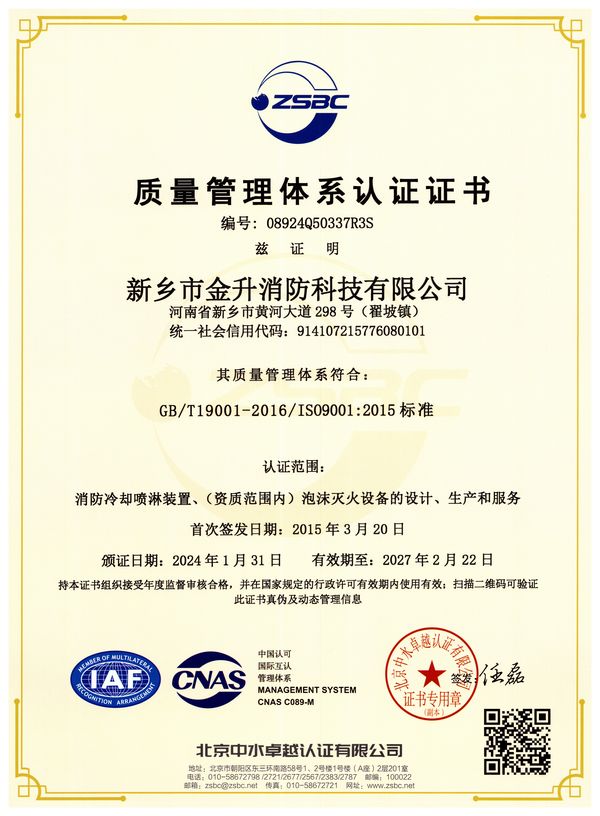 質(zhì)量管理體系認(rèn)證證書(shū) -